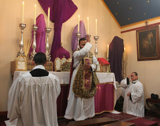 Instead on this day we have parts of Psalm 42 read at the Introit in the person of Christ who says, "ipsa me deduxerunt et adduxerunt in montem sanctum tuum et in tabernacula tua". What else is Calvary but the Holy Mountain of our Redemption? And what else this Tabernacle but the "greater and more perfect tabernacle" spoken of in today's Epistle?